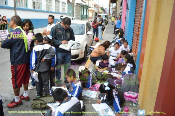 Mientras los estudiantes de primero a sexto grado toman clases en las banquetas de las afueras del plantel educativo, padres de familia y maestros protestan la apertura inmediata del plantel educativo, pues ya llevan más de un mes sin clases formales.