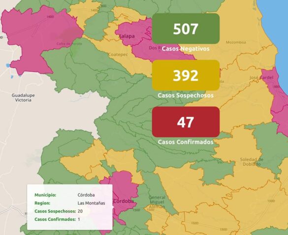 Córdoba, Ver.- La Secretaría de Salud de Veracruz en su actualización sobre el COVID19 del martes siete de abril informó que en la ciudad de Córdoba se registró el primer caso positivo al contagio de ese coronavirus, además de que señaló que se mantienen en estudio 20 casos más considerados sospechosos.