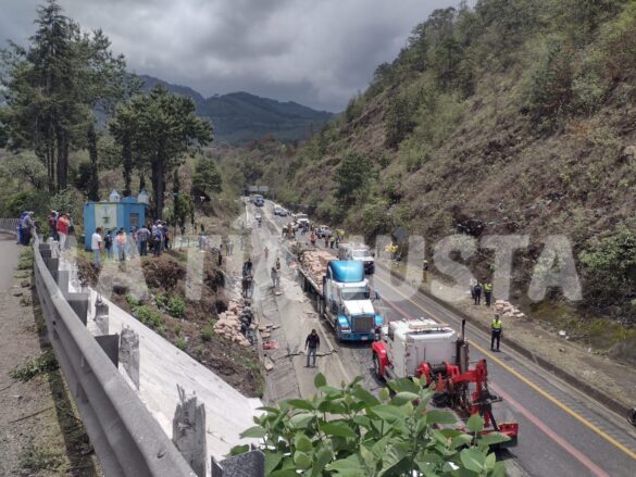 Maltrata, Ver.- El choque por alcance e incendio entre dos tráileres sobre la Autopista 150D Puebla- Orizaba, dejó como saldo daños y pérdidas materiales millonarias, así como el cierre total de la circulación vehicular a la altura de las Cumbres de Maltrata y una intensa movilización de diferentes cuerpos de emergencias y rescate, además de policiales y de rapiñeros, los cuales robaron cerca de 40 toneladas de bultos de cemento; no se reportaron personas lesionadas ni víctimas que lamentar.
