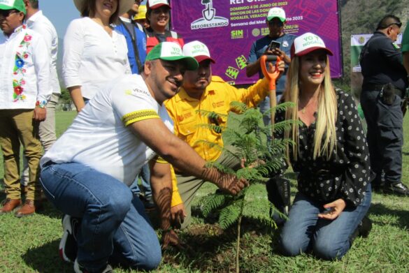En representación del Gobernador del estado de Veracruz, asistió la directora general del DIF Veracruz, Rebeca Quintanar Barceló, quién se integró a la siembra de árboles.