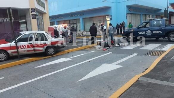 Los hechos se registraron alrededor de las 7:30 horas, cuando presuntamente el taxi Nissan Tsuru número económico 1540 que manejaba Mario Morales, circulaba sobre Poniente 5 y la motocicleta marca Italika negra con rojo, modelo 2021 y con placas de circulación 88-YHD7 del Estado sobre la calle sur 2, al llegar al cruce ambos vehículos se encontraron suscitándose el impacto.
